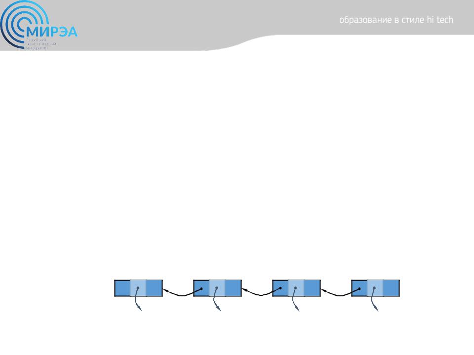 •Мы можем реализовать стек в виде односвязного списка