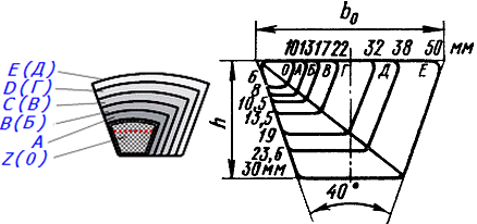 По конструкции (профилю) ремней.