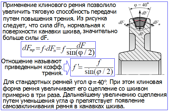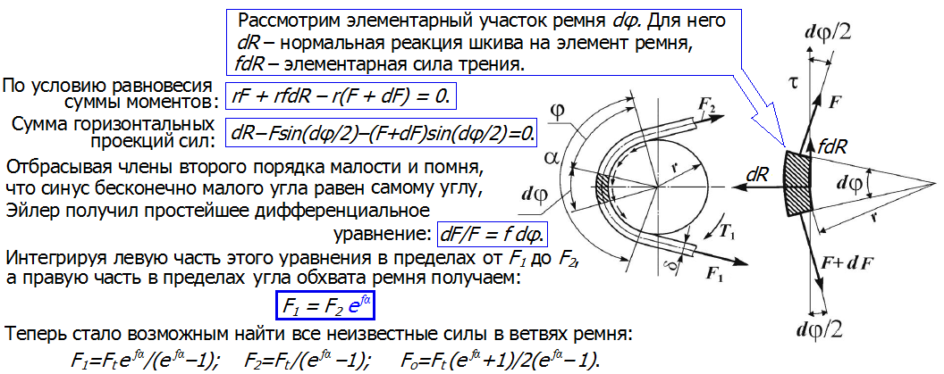 Это уравнение устанавливает изменение натяжения ветвей в зависимости от нагрузки T1, но не показывают нам тяговую способность передачи, которая связана с силой трения между ремнём и шкивом.