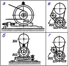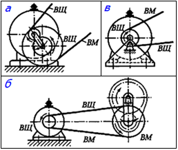 - перемещением электродвигателя (рис., а);