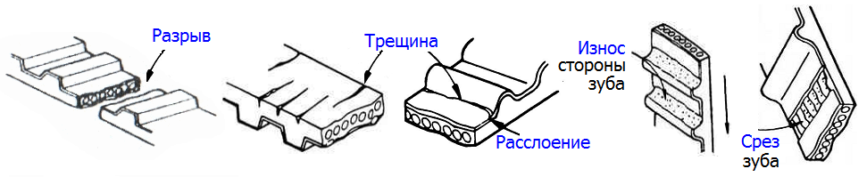 зубчатого ремня; повреждение зубьев