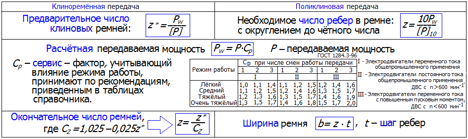 3. Рассчитывают необходимое число ремней z или ребер z в ремне