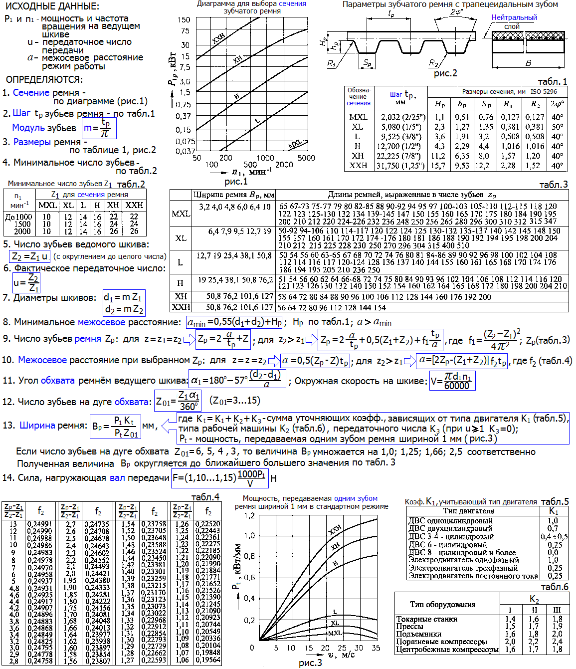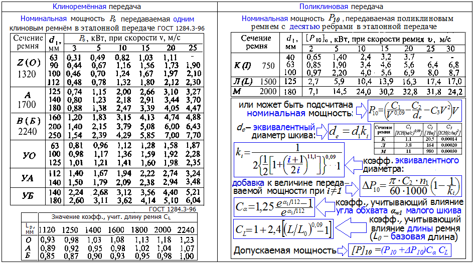 Р0 - табличная мощность, номинальная для конкретного ремня в зависимости от его специализации (нормальный, узкий, поликлиновой вариаторный ремень,).