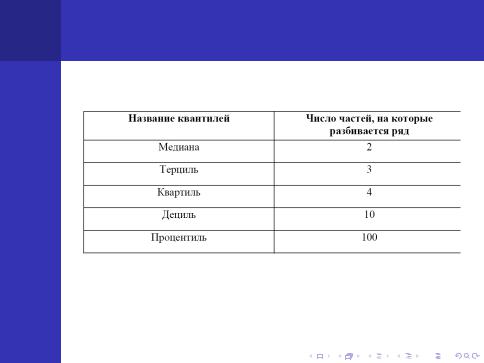 Процентилi – це характеристика набору даних, що виражають ранги елементiв масива i є показником того, який вiдсоток значень знаходиться нижче визначеного рiвня.