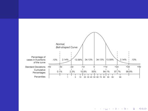 Normal Bell-shaped Curve – Нормальная колоколо-образная кривая Percentage of cases in 8 portions of the curve – вероятность в % события на 8 отрезках кривой