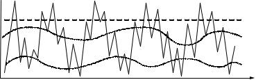 Пунктирными линиями на рис. 4.7 обозначены уровни напряженности поля, которые превышаются сигналом в течение определенного времени наблюдения. Так, уровень E0,5 превышается в течение 50 % времени наблюдения. Такой уровень называется медианным. Уровень E0,9 превышается в течение 90 % времени наблюдения. Очевидно, что можно провести уровни сигналов, превышаемые для любой заданной доли времени наблюдения.