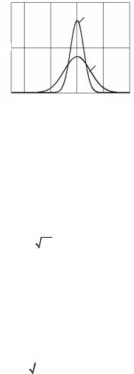 Рис. 2. Плотность вероятности при нормальном законе: 1 — 0,5; 2 — 1, õ0 2