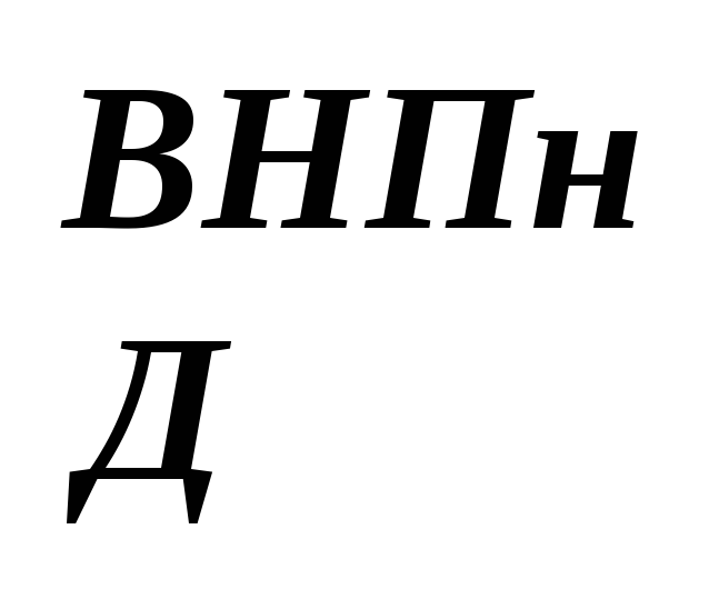 Реальный объем ВНП (ВНПр) равен номинальному ВНПн деленному на дефлятор (Д).