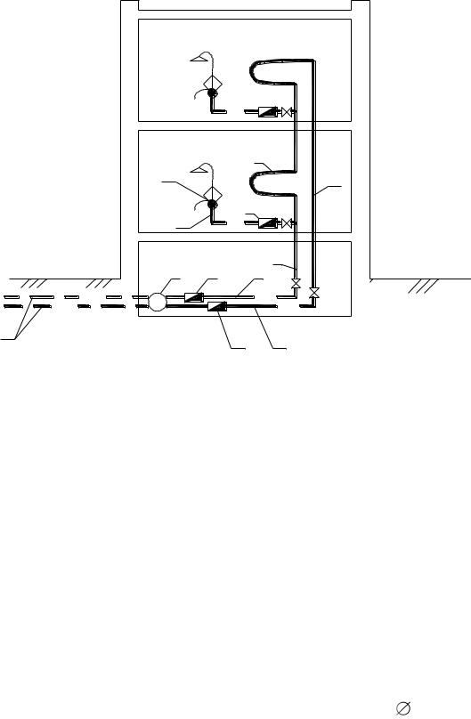 Элементы горячего водопровода Т3–Т4 рассмотрим на примере схематического разреза двухэтажного здания с подвалом (рис. 9).