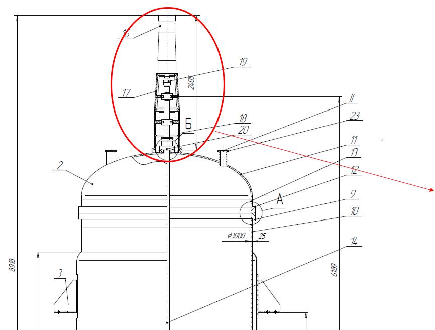 На общем чертеже аппарата привод типа 1 с мотор-редуктором выглядит так
