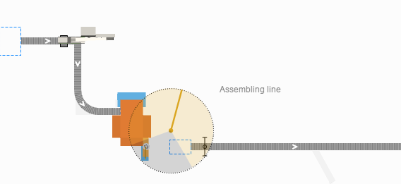 Дважды щелкните элемент Конвейер в палитре, чтобы переключиться в режим рисования, и нарисуйте еще одно ответвление конвейера от элемента turntable в соответствии с планом пространства.