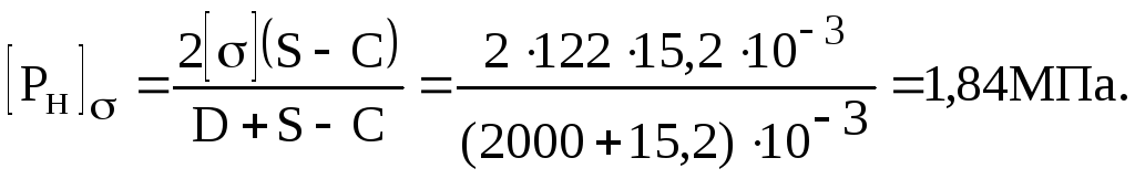 Pнр=0,4 МПа <[p]=0,718 МПа