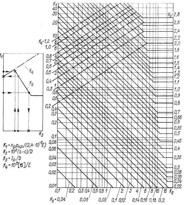 Коэффициент К2 определяется по номограмме, приведенной на рис. 2.4, в зависимости от вспомогательных коэффициентов: