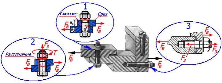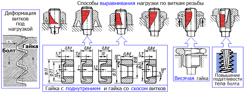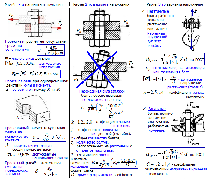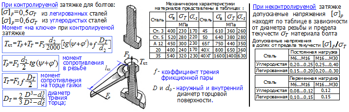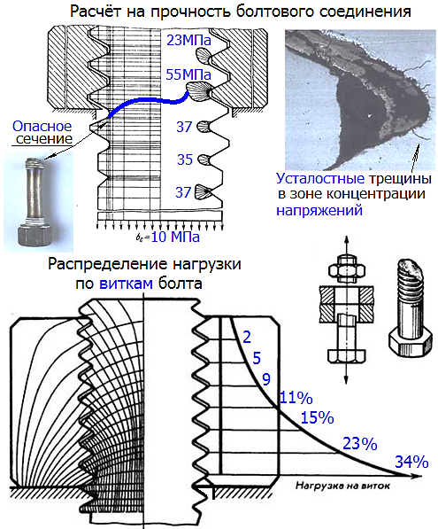 Параметры резьбы стандартных крепежных изделий подобраны таким образом, что наиболее слабым элементом является тело болта (винта, шпильки).