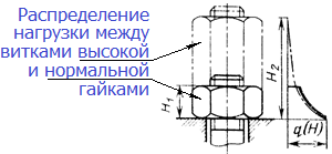 по высоте гайки распределяется крайне