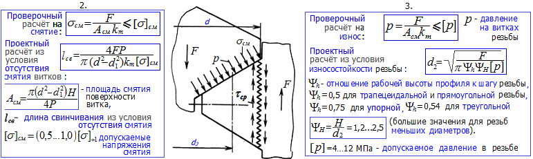 Неравномерность распределения нагрузки по виткам резьбы учитывается опытным коэфф. km.