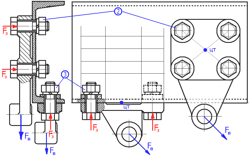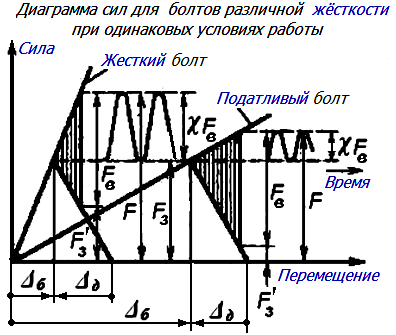 2. Для уменьшения дополнительной силы на болт от внешней нагрузки необходимо снижать коэффициент χ , путем уменьшения податливости деталей (увеличения их жесткости) и увеличения податливости болта.
