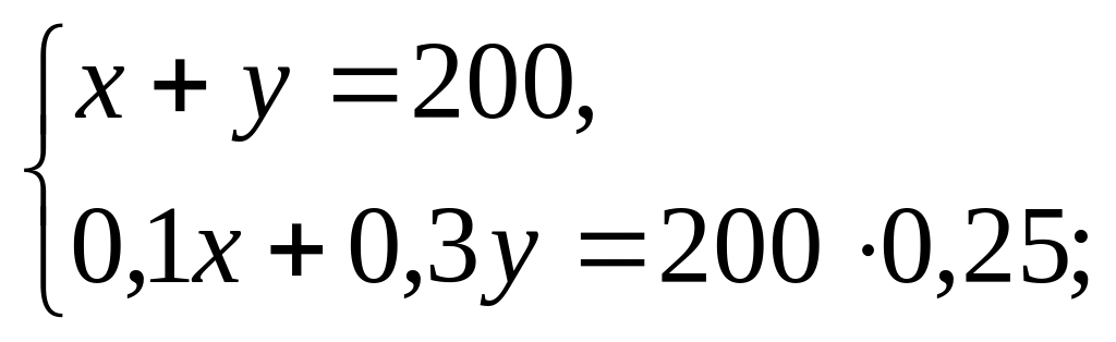 Ответ: 120. Пример 10. Имеется лом стали двух сортов, причем первый сорт содержит 10 % никеля, а второй 30 %. На сколько тонн больше нужно взять лома стали второго сорта, чем первого, чтобы получить 200 тонн стали с содержанием никеля 25 % ?