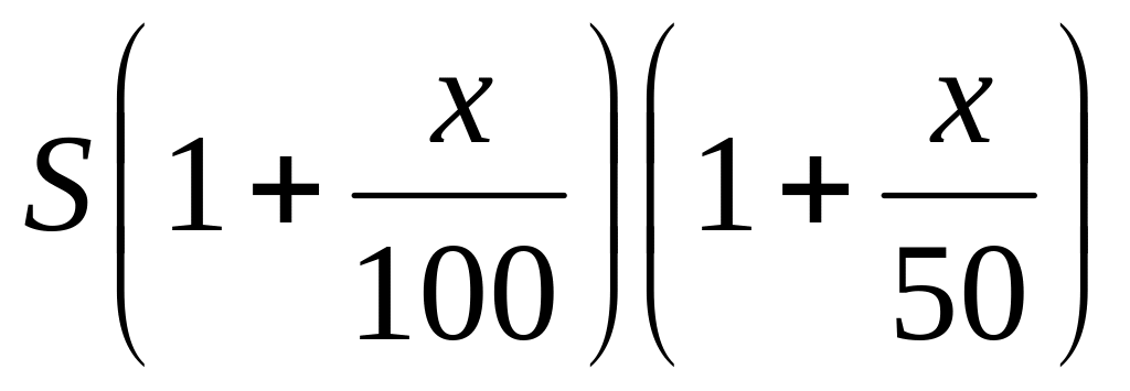 Пример 2. Цена товара снижена на 40 %, а зарплата дваж-ды увеличивалась на 20 %. На сколько процентов больше