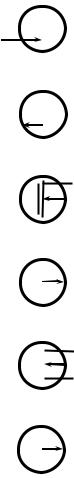 Проводимость канала может быть электронной или дырочной. Если канал имеет электронную проводимость, то он называется n-каналом. Каналы с дырочной проводимостью называются p-каналами. Таким образом, под общим понятием «полевой транзистор» скрываются шесть разных видов транзисторов: полевые транзисторы с управляющим p-n-переходом с каналами n-типа и p-типа и четыре типа транзисторов с изолированным затвором – с каналами n-типа и p-типа, каждый из которых может иметь индуцированный или встроенный канал. Условные графические обозначения (УГО) этих типов транзисторов приведены на рис. 3.9.