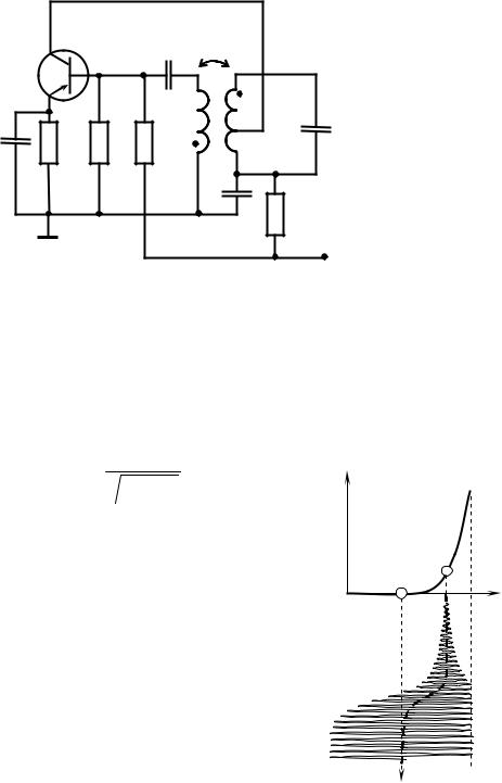 зью показана на рис. 14.3. Эту схему принято называть классической. Основу генератора составляет резонансный усилитель с колебательным контуром LC, катушка которого индуктивно связана