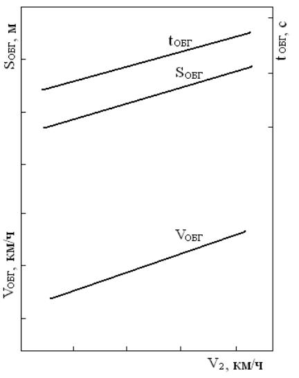 На основании полученных данных необходимо построить график изменения параметров обгона в зависимости от скорости обгоняемого ТС (рис. 5).