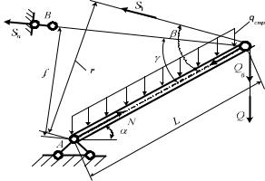 В расчетной схеме (рис. 3) приняты следующие обозначения: Sп – усилие растяжения в подвеске стрелы; – угол наклона стрелы; Q – нагрузка на крюке; Qб – сила тяжести от блоков и головной части стрелы; qстр – погонный вес стрелы; S1 – усилие в канате поли-