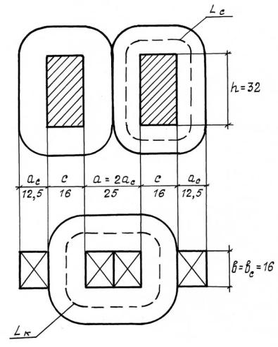 Рабочая индукция меньше индукции насыщения BS = 1 Тл, поэтому дальше она не корректируется.