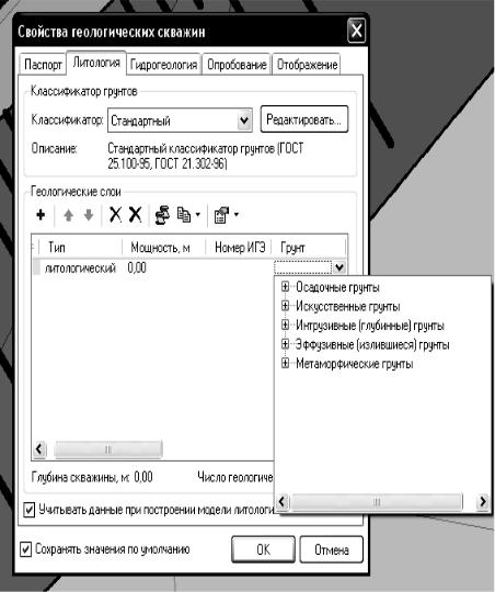 Значения параметров «Состояние», «Включения» (если они заданы для данного вида грунта) и «Описание грунта» можно изменить в данном слое, и при этом в классификаторе значения не изменяются.