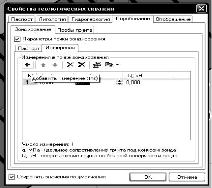 На закладке «Измерения» вводится информация об измерениях, произведенных в процессе погружения зонда.