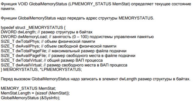 Последняя функция будет использоваться в лабораторных работах для получения информации о том, сколько памяти потребляет ваша программа.