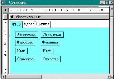 Если необходимо вывести на экран записи, каждая из которых содержит большой объем информации, вы можете создать многостраничную форму. Перелистывать страницы можно, выбирая ярлыки соответствующих вкладок (рис. 13).