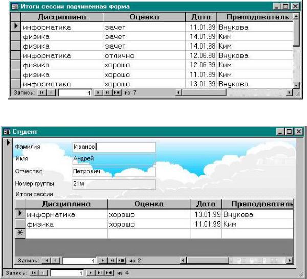 содержащую информацию о студентах, можно внедрить форму с информацией об итогах сессии (рис. 15).