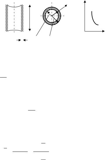Однослойная стенка (трубка) при = const. Рассмотрим цилиндрическую стенку (трубку) длиной l с внутренним r1 и внешним r2 радиусами (рис. 1.2, а).