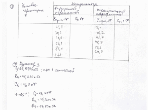 В добавок к этому были посчитаны температурные коэффициенты сопротивления для третьего и четвертого резисторов, -2,026*10^-4 и 2,46*10^-6 соответственно. У третьего резистора ТКС отрицательный, следовательно, его сопротивление падает при нагревании. Емкость конденсатора медленно повышается при нагревании (ТКС=4,83*10^-5).