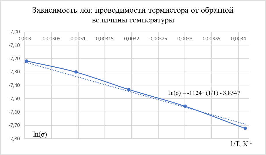 температурная зависимость проводимости термистора может быть аппроксимирована уравнением:
