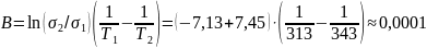 ln(σ) = -1124 ‧ (1/T) - 3,8547→ ln(σ1) = -1124 ‧ (1/313) - 3,8547≈ -7,45; ln(σ2) ≈ -7,13