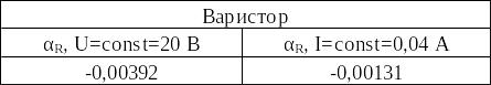 αR (U=const=20 В) = 1/(20/0,02) ‧ (20/0,03 - 20/0,02) / (373 – 288) ≈ -0,00392 К-1