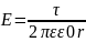 Поле длинной двухпроводной линии. На планшете моделируются так называемые плоские поля, т. е. такие поля, картина которых остается неизменной при параллельном переносе плоскости, в которой производится исследование поля. Как правило, это электростатические поля объектов, бесконечно протяженных в направлении, перпендикулярном секущей плоскости. В работе исследуется поле двух длинных, параллельных, равномерно и разноименно заряженных проводящих цилиндров (двухпроводной линии). Если абсолютное значение линейной плотности заряда на цилиндрах τ (Кл/м), то напряженность электростатического поля в произвольной точке секущей плоскости будет определяться геометрической суммой напряженностей полей, создаваемых каждым цилиндром (принцип суперпозиции). Для каждого цилиндра абсолютное значение напряженности поля