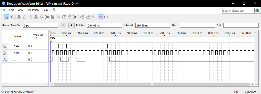 Построить временные диаграммы, иллюстрирующие работу устройства. Период тактового сигнала задать 20 нс.