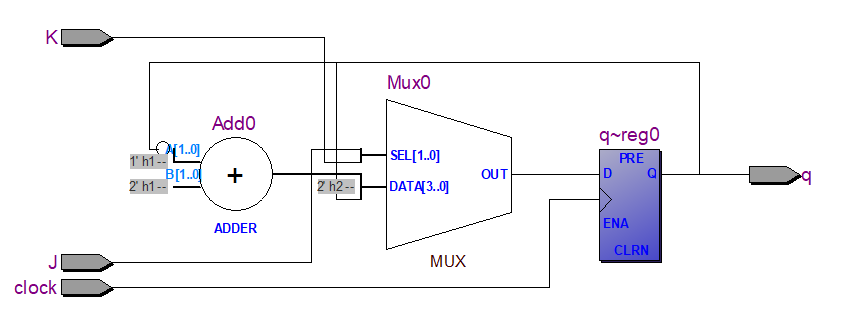 2. Собрать схему асинхронного J-K-триггера в текстовом редакторе. Для этого воспользоваться кодом из приложения.