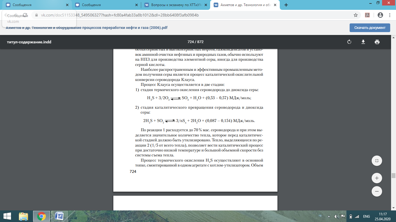 40 Технологии получения элементной серы методом Клауса.(Ахметов с.724)
