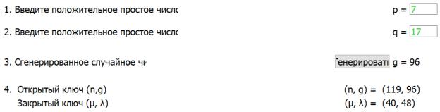 В качестве открытого ключа принимаем пару (n, g), а закрытого - ( , ).