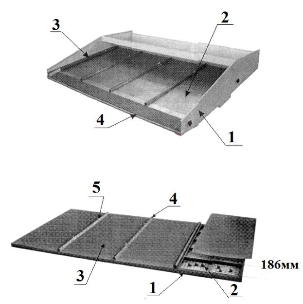 1, 2 – боковины; 3 – связь; 4 – раскос; 5 – балка |