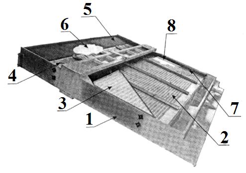 1 – корпус; 2 – очиститель призматический; 3 – решето; 4 – планка прижимная; |