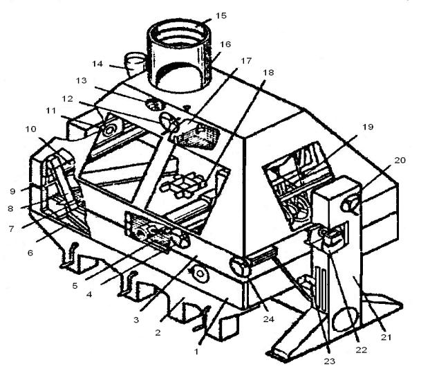 5 – пружина; 6 – заслонка; 7 – дека; 8 – подвеска; 9 – уплотнение; 10 – стяжка; 11, 22 – оси; |