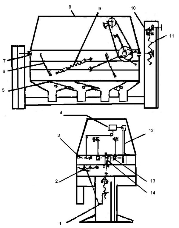 7, 10, 13, 14 – подшипники; 9 – пружины; 11 – механизм регулировки |