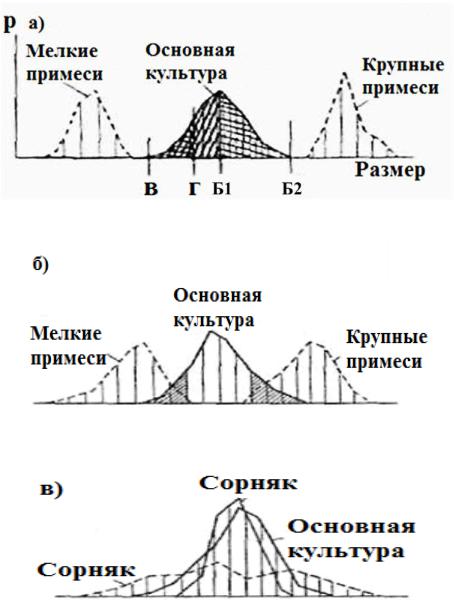Рис. 5.2. Соотношен е размеров семян очищаемой культуры и примесей: |