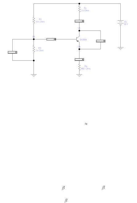 2.3.2 Для схемы рисунке 7 по формулам из раздела "Краткие сведения из теории" вычислить значение напряжения в точке U Б . Вычислить ток эмиттера и рассчитать ток коллектора по