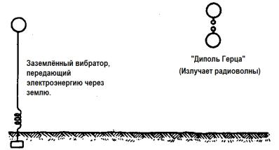 производятся звуковыми волнами в воздухе. Таким образом, беспроводный передатчик не производит волны Герца, которые являются мифом, но он производит звуковые волны в эфире , поведение которых похоже на поведение звуковых волн в воздухе, за исключением того, что огромная упругость и крайне малая плотность данной среды делает их скорость равной скорости света». - АЕМ